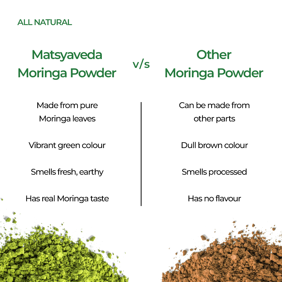 MATSYAVEDA's Moringa Powder is made of highest quality moringa leaves.