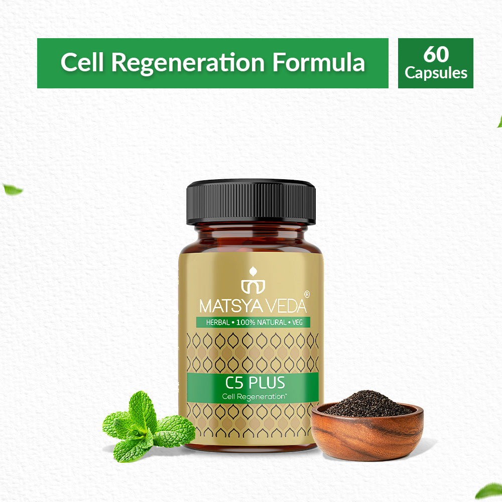 Matsya-Veda Herbals’ C5 PLUS helps protect cells against the effects of free radicals, thus preventing cellular damage. It supports renewal,