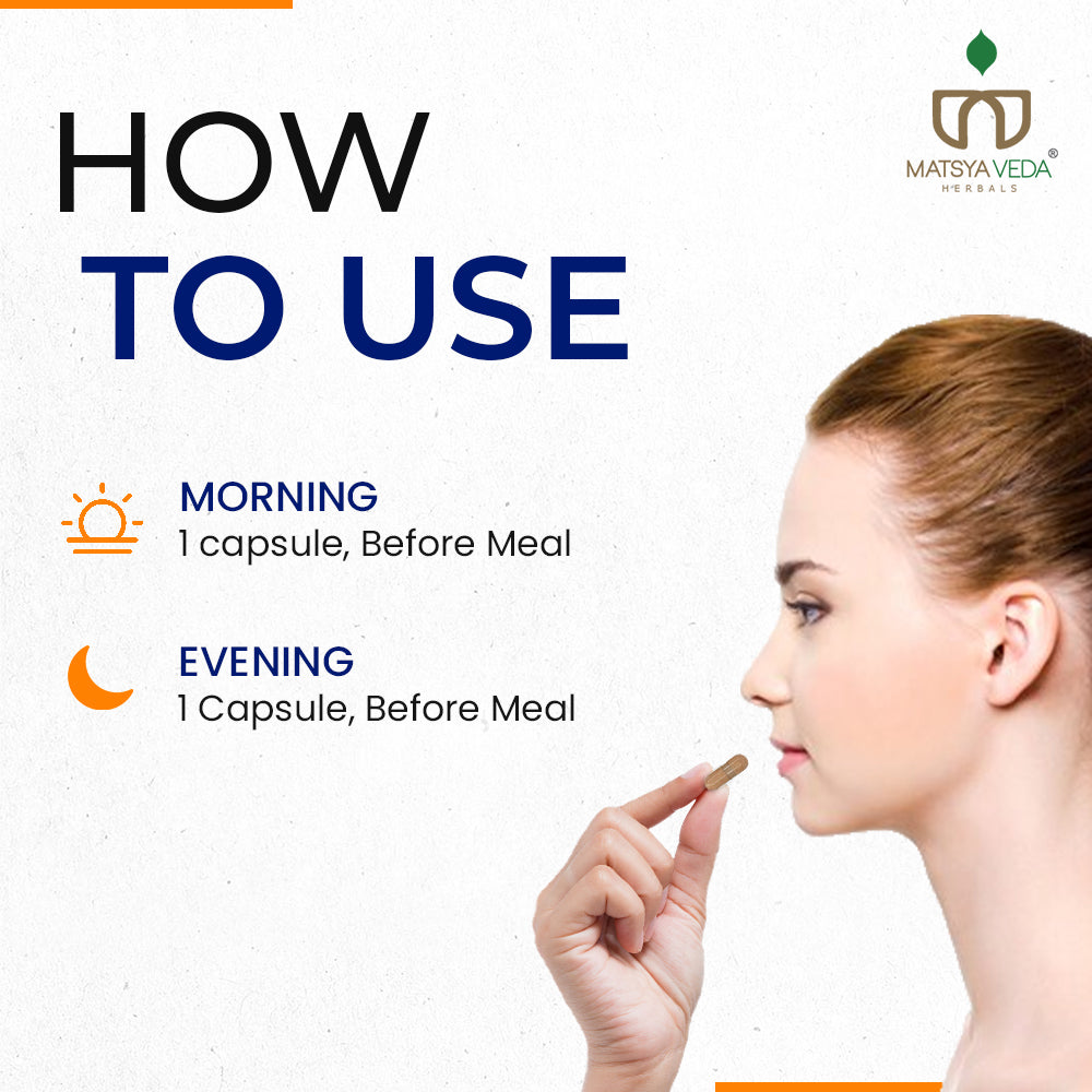Each capsule is prepared as per the home remedies and Ayurvedic principles. It follows and focuses on the Ayurvedic philosophy of maintaining a balance between the three doshas for the overall health and getting rid of the problem from the root.